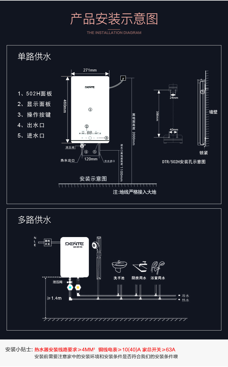 德恩特DTR-V7H85恒溫經典 大屏顯示 四季淋浴快速洗澡
